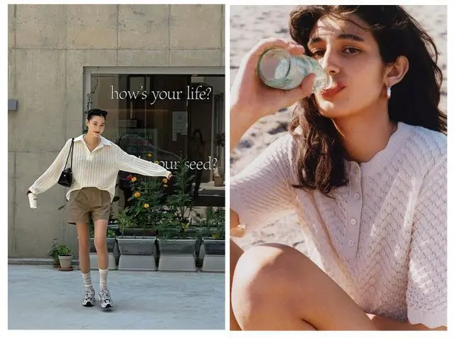 镂空的上衣可以让肌肤自在呼吸,像镂空Polo衫和小开衫,宽松不收腰穿起来毫无压力,还可以自由调节领口的露肤度,慵懒松弛的落肩设计,单穿或者内搭同色系bra,穿起来都自在随意。