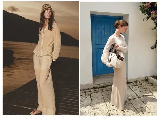 棉麻与盛夏堪称绝配,棉麻有着慵懒而又不失利落的美感,纯白色系如海盐冰淇淋般消解暑气,而高饱和的颜色,在粗粝的质感中迸发出高级感,搭配一些手工串珠项链,很有悠然的闲适气息。