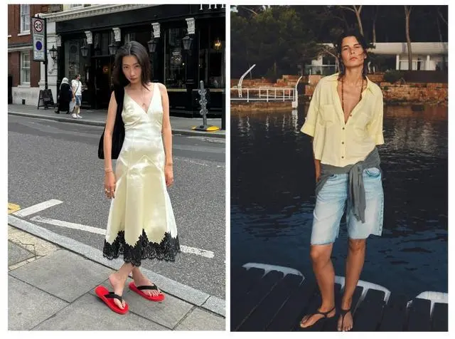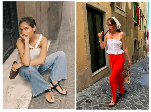 人字拖可以说是完美契合度假风所需的自由精神,无论是搭配短裤的洒脱帅气,还是与飘逸长裙混搭,一双简约的薄底人字拖带来的无束缚感,都能让造型轻松惬意起来。