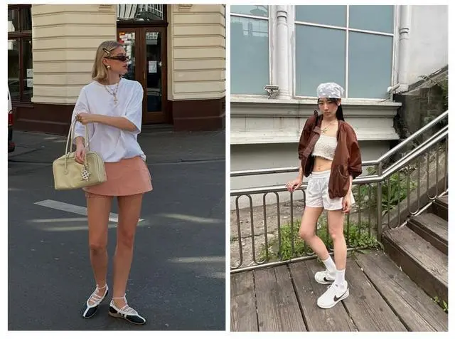 网面平底鞋的网眼材质很好地减少了闷热感,独特的鞋头设计,能在视觉上延伸腿部线条,让双脚显得格外纤细修长,为海岛的造型增添一份精致与舒适的平衡。