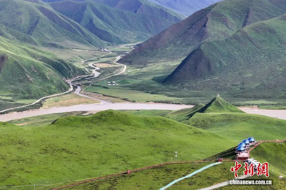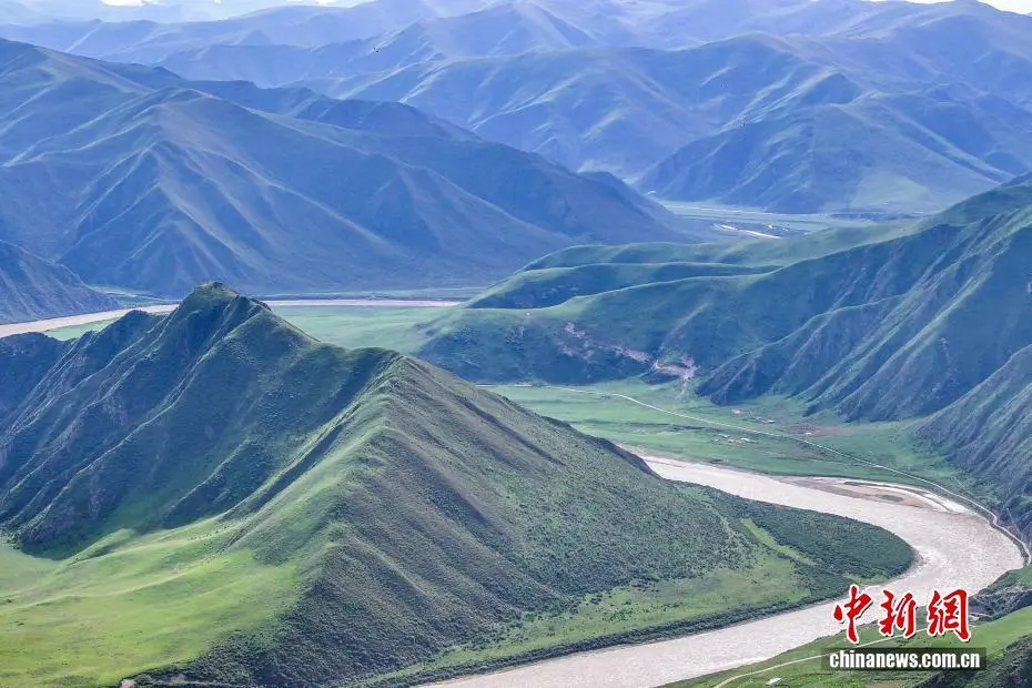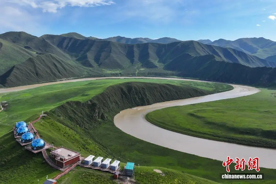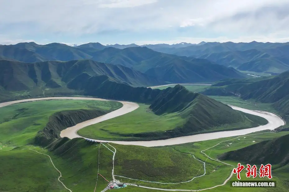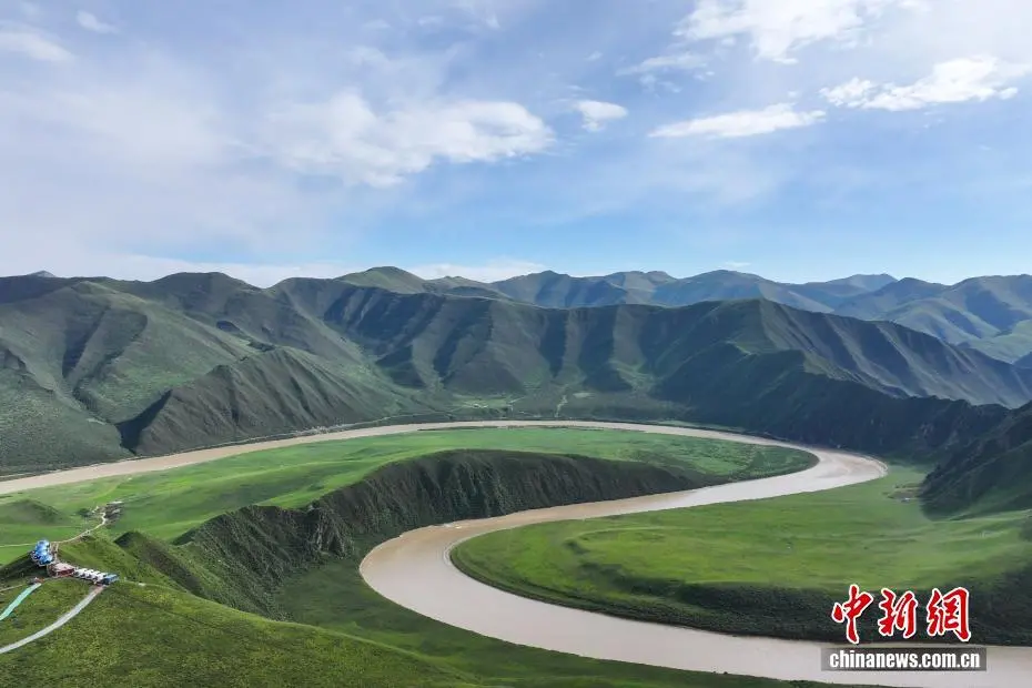 8月14日,航拍位于青海省果洛藏族自治州久治县境内的黄河女儿湾。久治县是长江、黄河两大水系的涵养区,是“中华水塔”的重要组成部分。中新社记者 薛蒂 摄