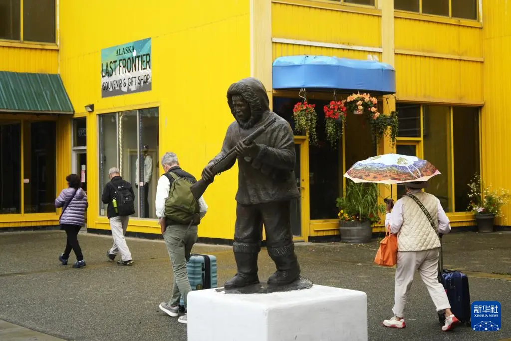 这是8月14日在美国阿拉斯加州安克雷奇市中心拍摄的街头雕塑。