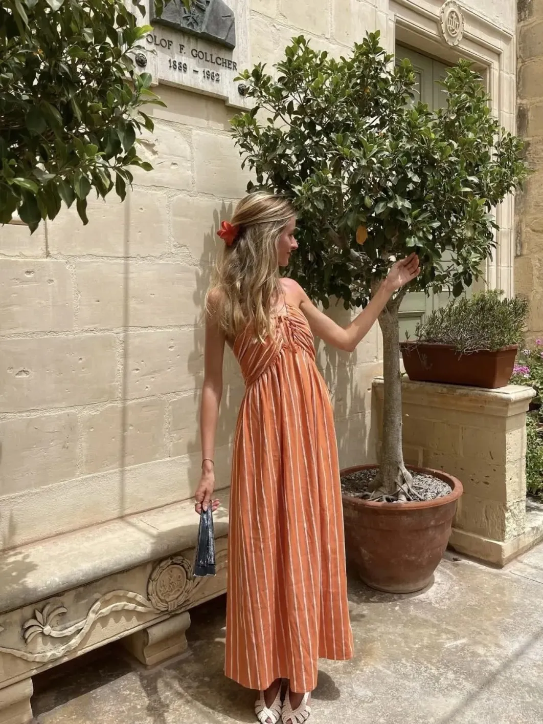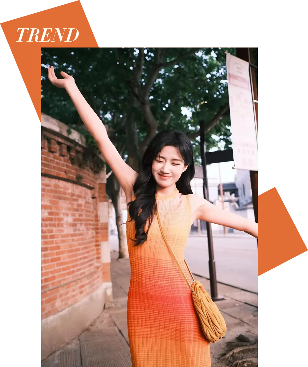 渐变橙色的浪漫气息仿佛把夏日调色盘穿在身上。随性不羁的明亮橙色既有波西米亚风格的浪漫和流浪感,又有海岛日落的自由氛围。