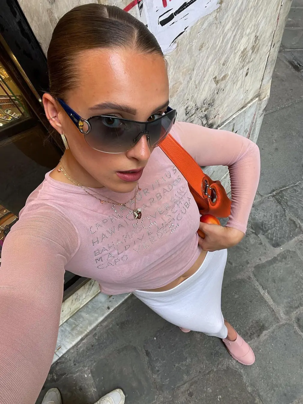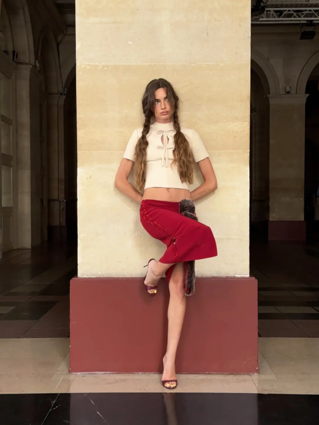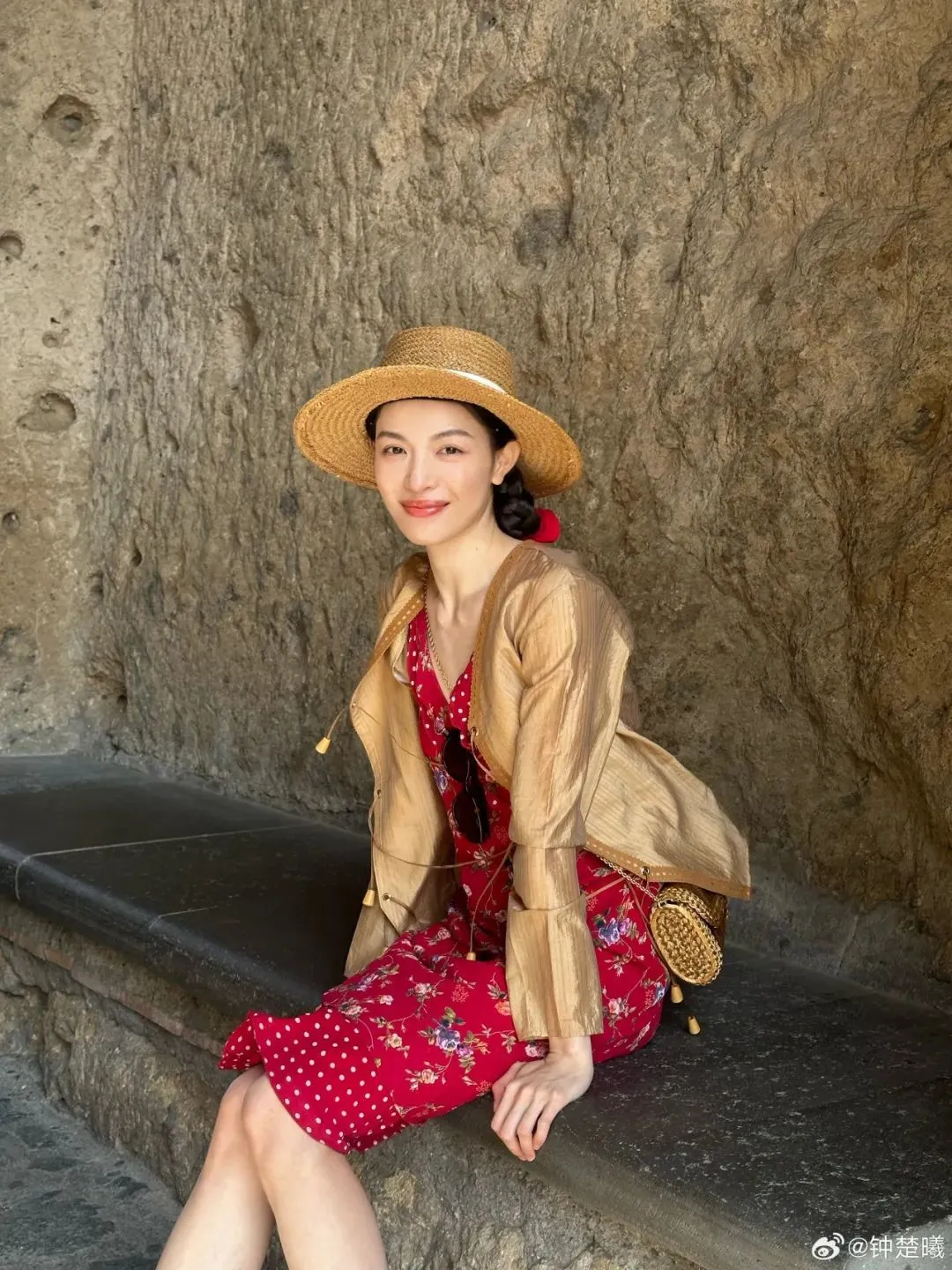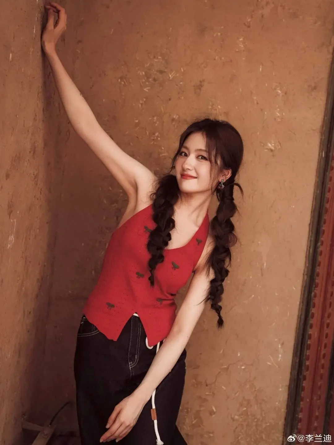 身穿樱桃红上衣的金靖一整个“港里港气”起来,搭配千禧年代的标志性单品,继续领跑“夏日复古千金”赛道。