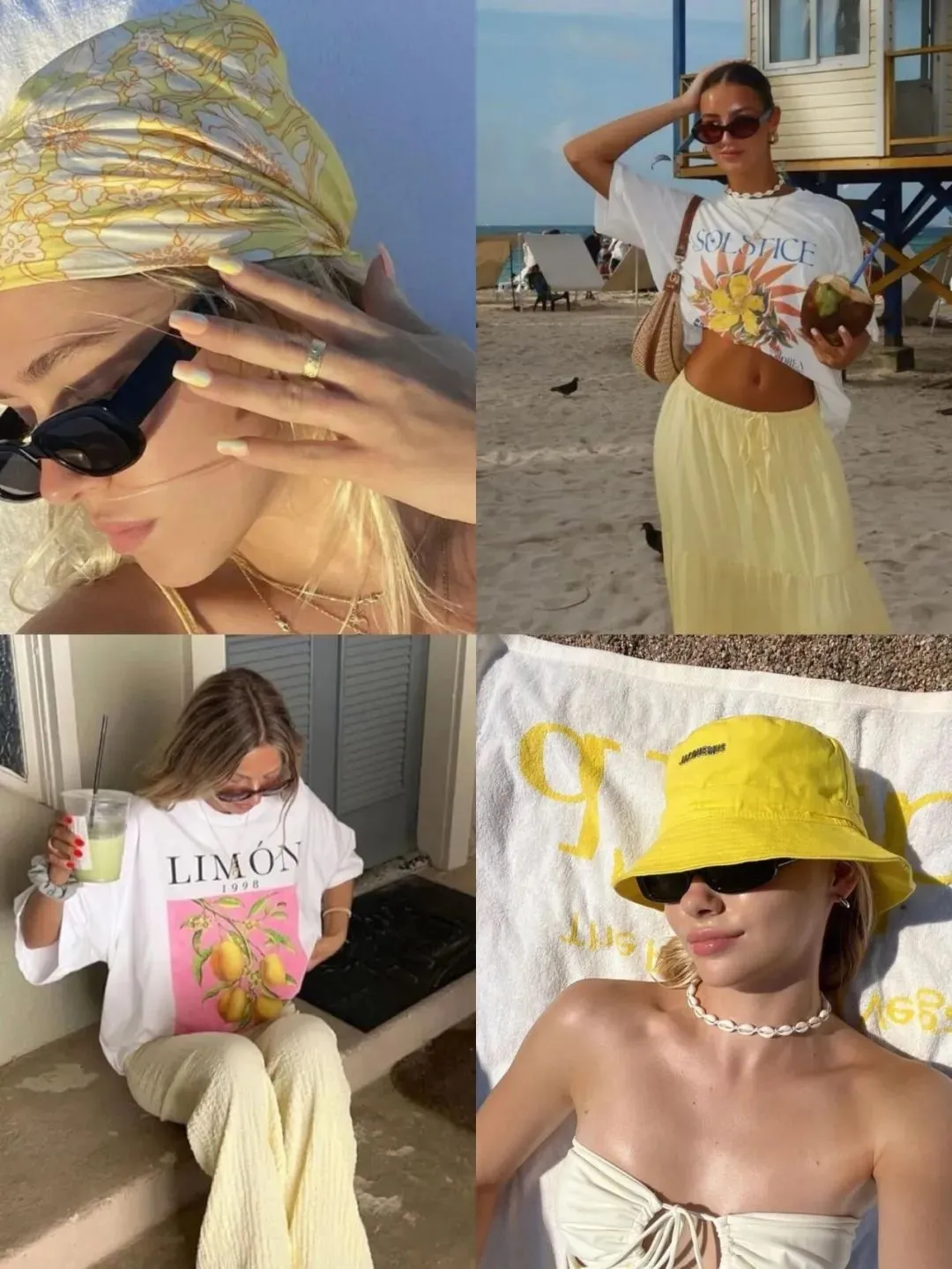 明亮却不刺眼,既有活力,也自带“提气色”的滤镜效果。这种略带酸感的清爽黄色,特别适合夏天,在视觉上既能提亮又很衬肤色。