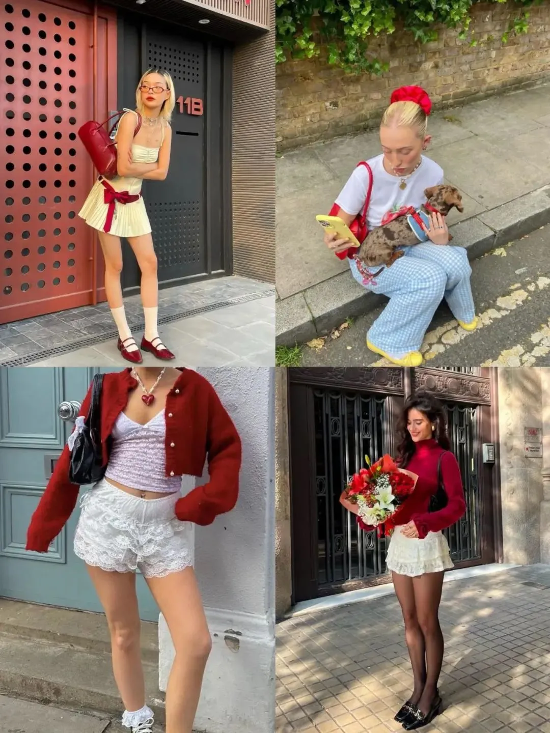 用樱桃红配饰点亮全身,比如玛丽珍鞋、中筒袜或是腋下包,哪怕只是发饰,都会让整个人看起来甜美又精神,元气值拉满。