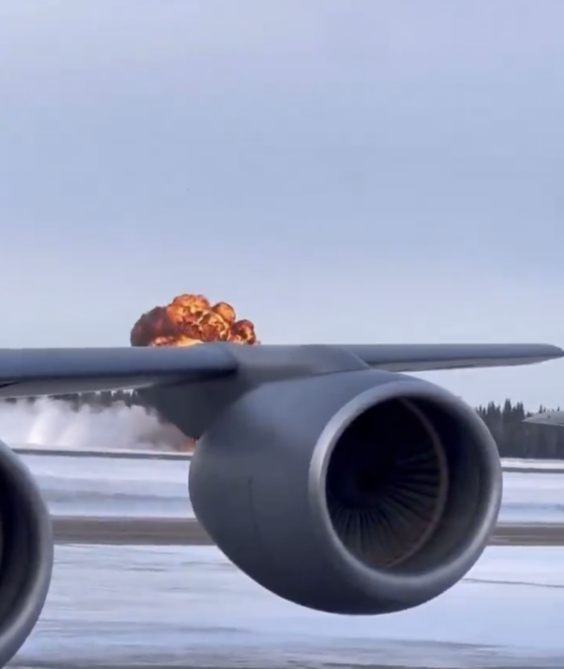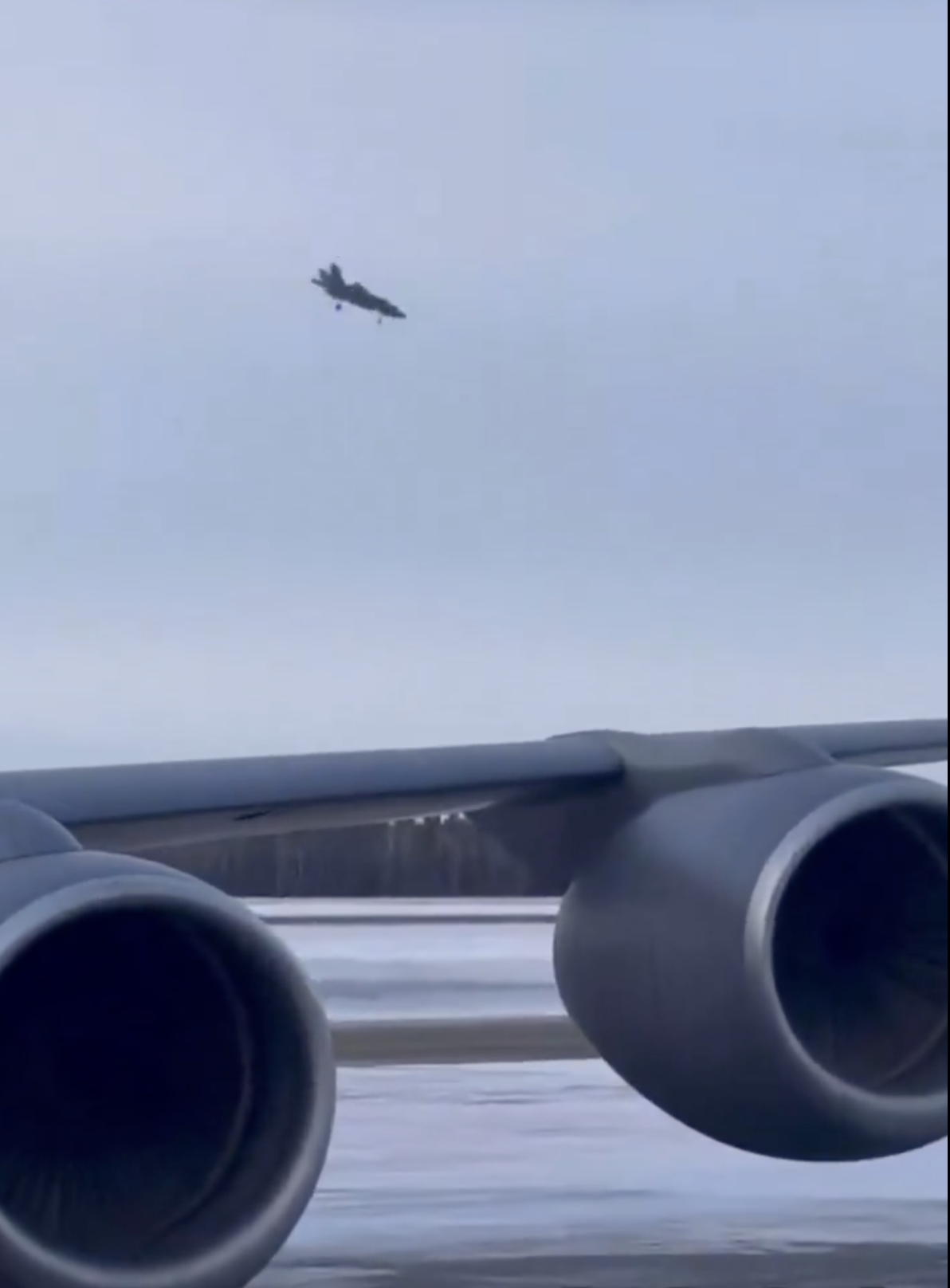 一架F-35战机在阿拉斯加州艾尔森空军基地垂直坠向地面。图源:外媒报道所配视频截图