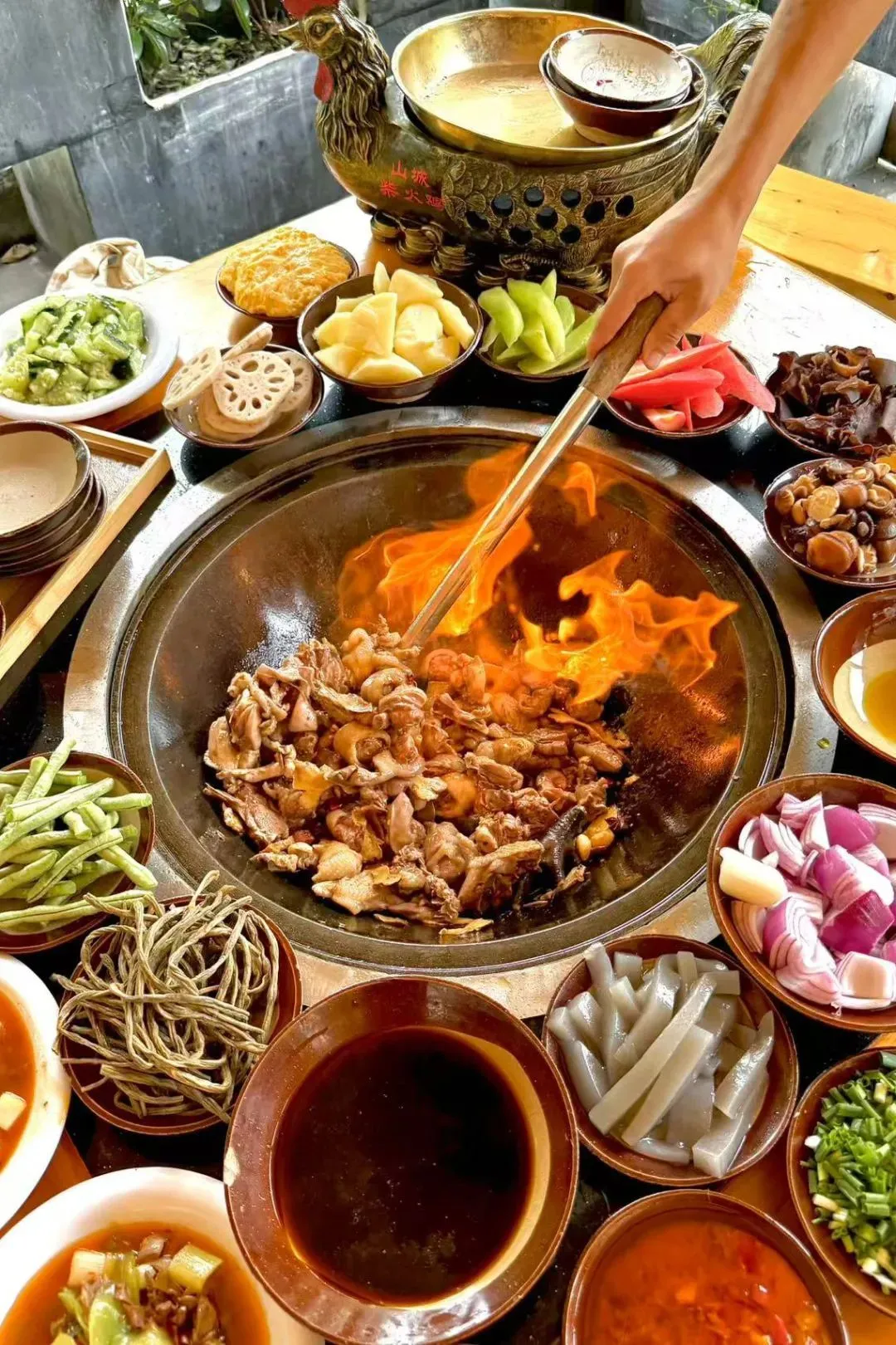 贵州人偏爱大锅烹煮,鸡总是唱主角。