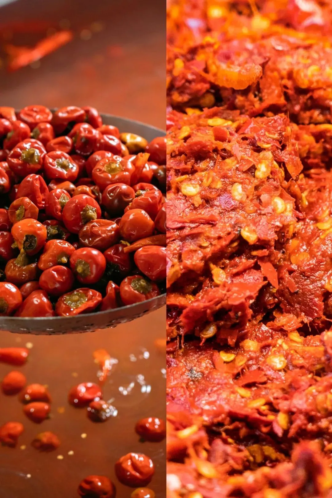 煮过的干辣椒再舂成糍粑辣椒。