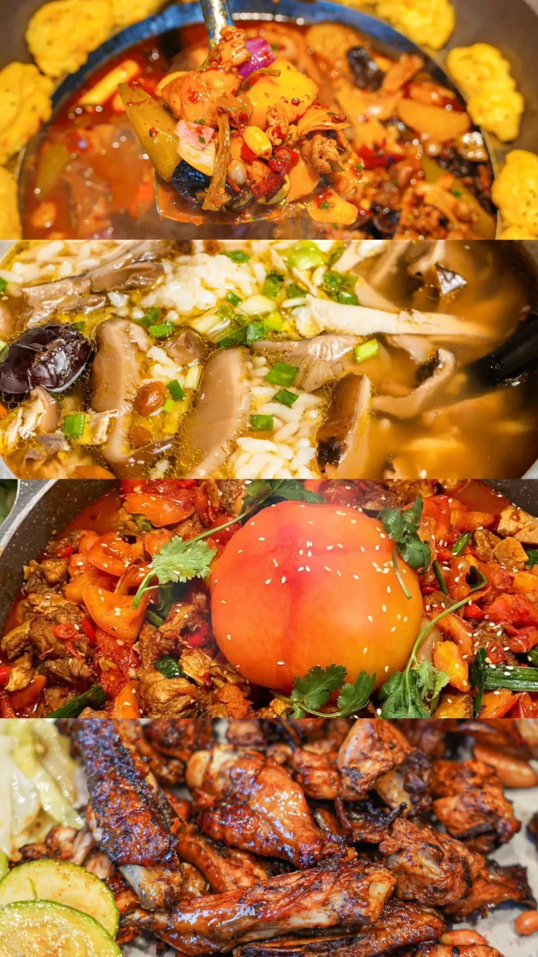 柴火鸡、鸡汤饭、番茄鸡、烤鸡。