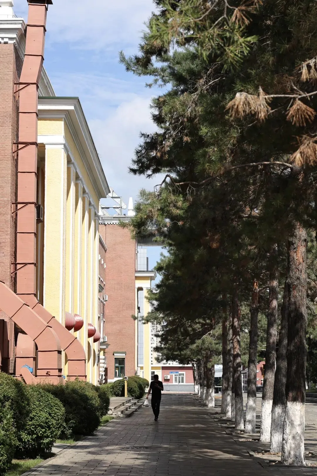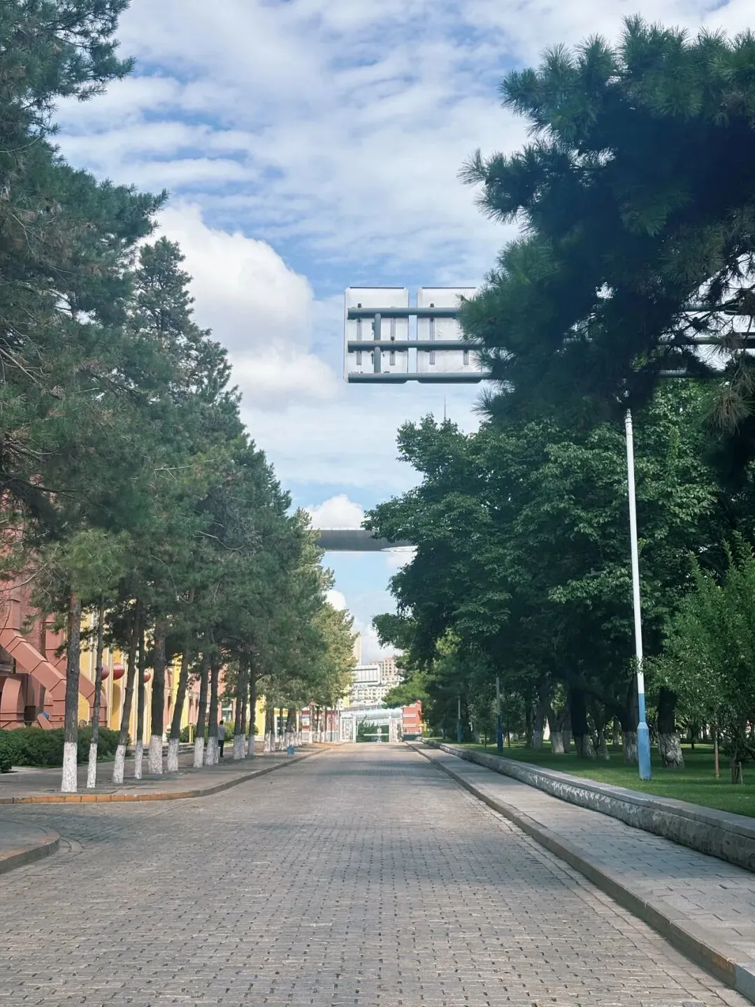 穿过1号门广场,绿树成排的中央大街,向两侧延伸开去。