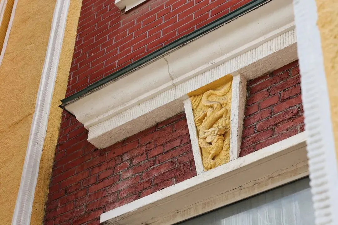 这栋建筑拥有精湛的琉璃装饰,褐色琉璃面砖做底,配以黄色琉璃。