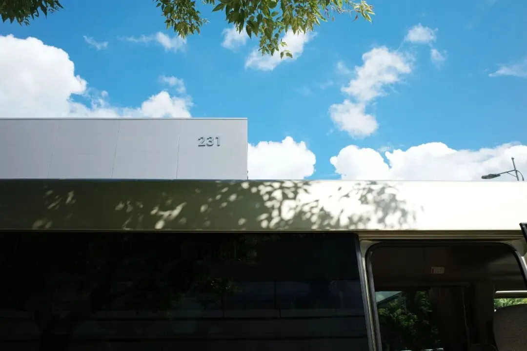 虽然站在老厂房,好像一切又都是新的,天空白云绿树,红色的房子,黄色的柱子,白色的雕塑,还有即将出街的新车。
