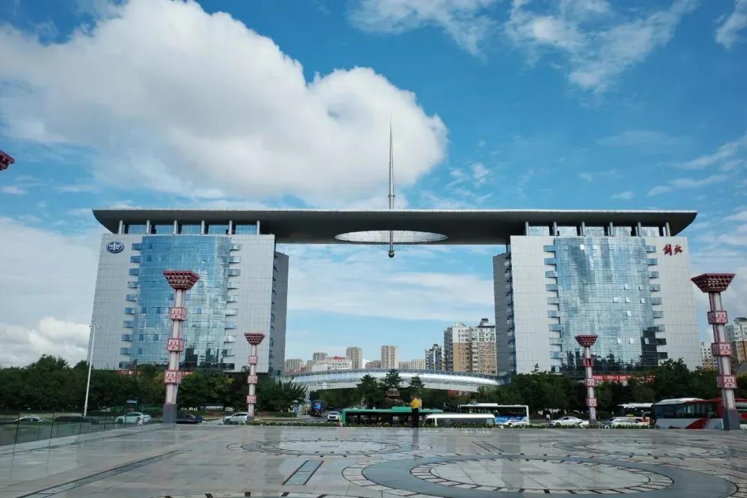 站在一汽一号门望向对面时,崭新的一汽街坊总部大楼,横跨街路两侧,巨大的拱门尽显未来科技之美。