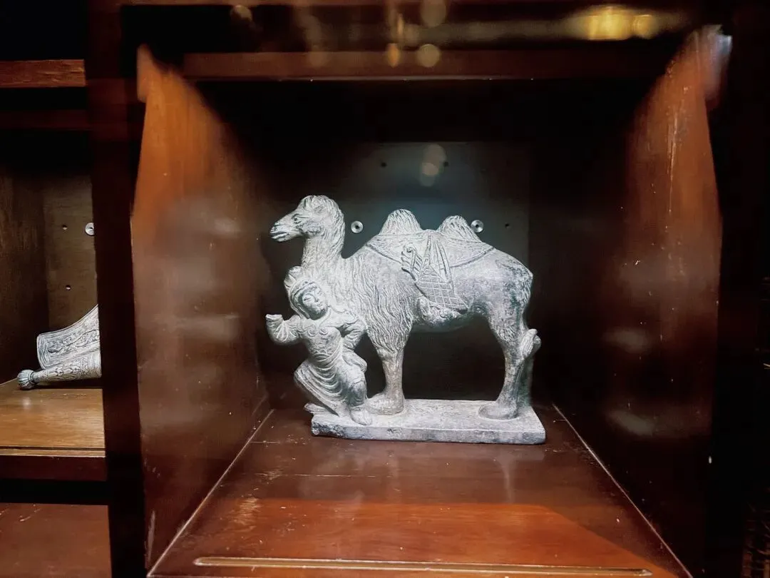 《平原游击队》里李向阳的马刀、《董存瑞》的炸药包模型、《刘三姐》的绣球、《杜十娘》中的百宝箱(下图1)、《刘三姐》财主莫怀仁家中的石骆驼(下图2)摆件。