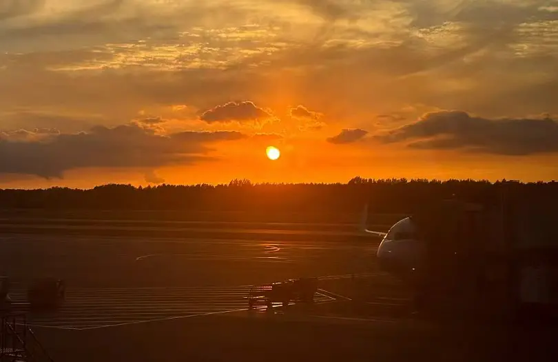 机场日落温柔地穿透廊桥,出了机场大厅,一辆红旗车在等候着。