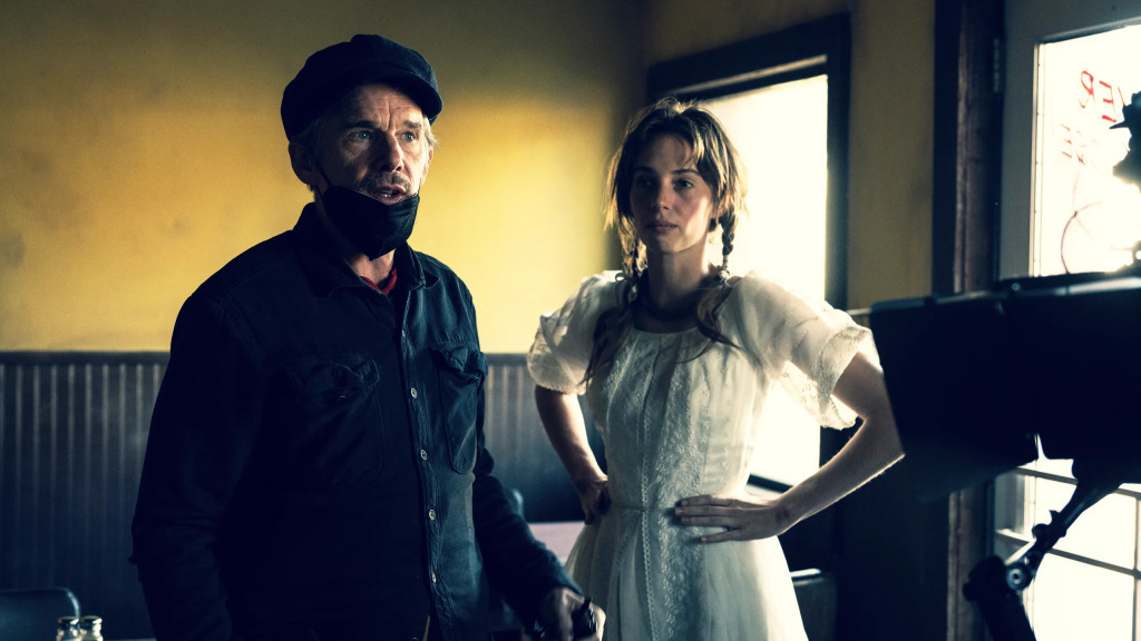 伊桑·霍克与玛雅·霍克在《野猫》拍摄现场。