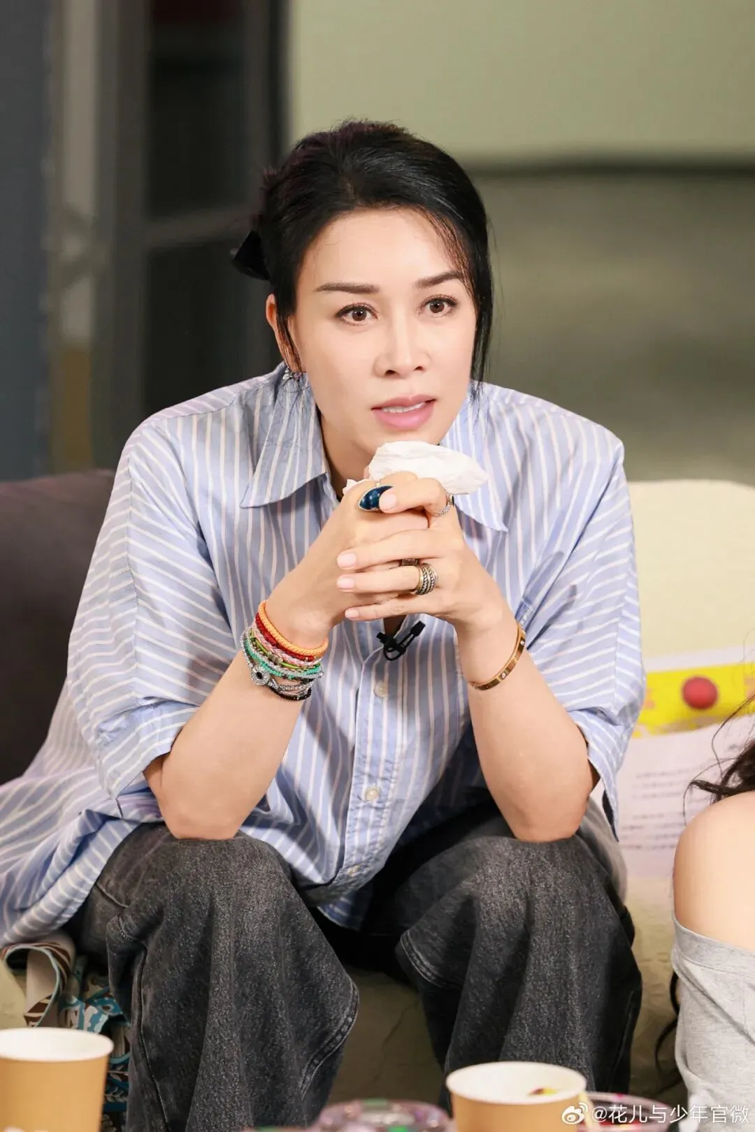除了“不好好穿衣”法则,那英私服中也有干练优雅的一面。条纹衬衫搭配牛仔裤,简洁又干脆,条纹的线条感让整个人显得格外精神。那种随性却带着一丝理性的气质,恰恰是初秋最让人着迷的状态。