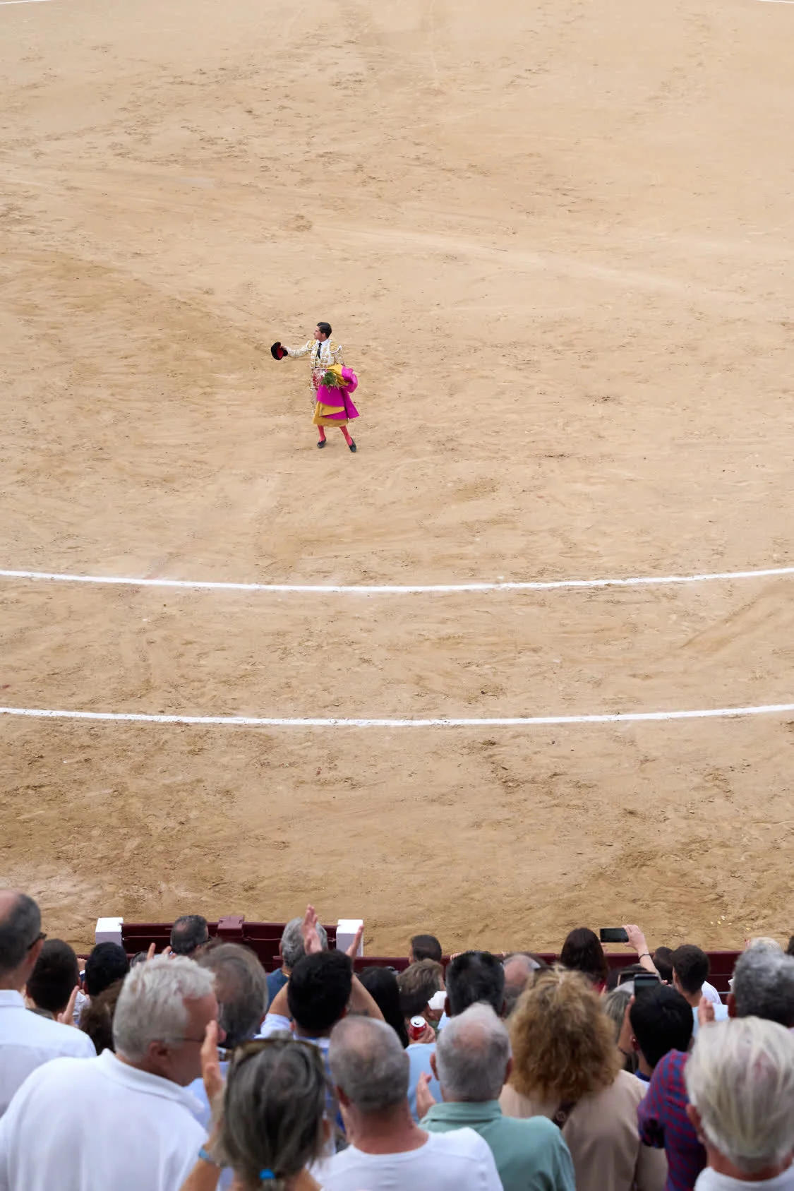 9月7日,一名斗牛士在西班牙马德里拉斯本塔斯斗牛场内谢幕。新华社记者 孟鼎博 摄