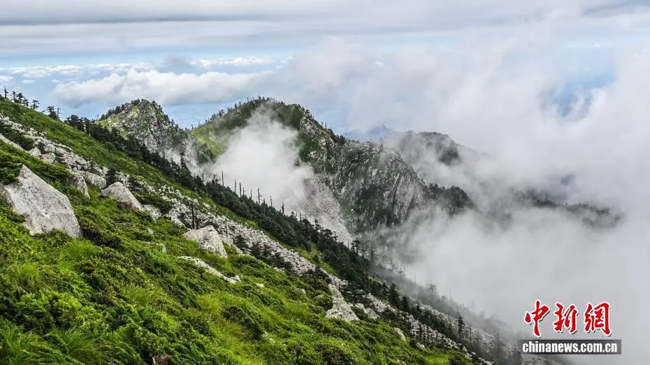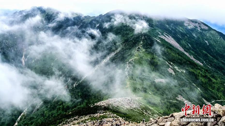 近日,位于秦岭腹地的西安朱雀国家森林公园内,山峦巍峨,云雾缭绕,蔚为壮观,吸引了不少游人前来登山赏景。图为初秋秦岭腹地景观。段鹏 摄
