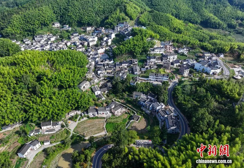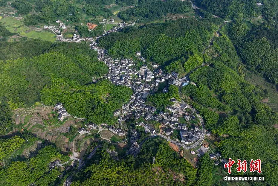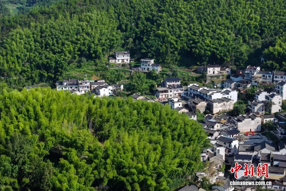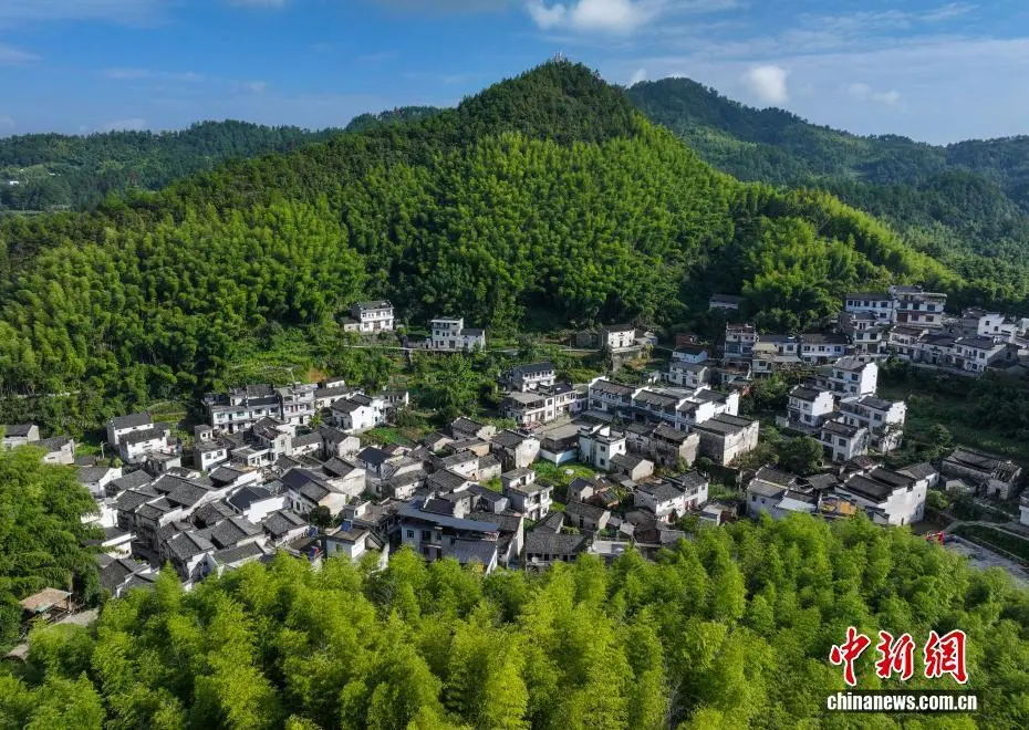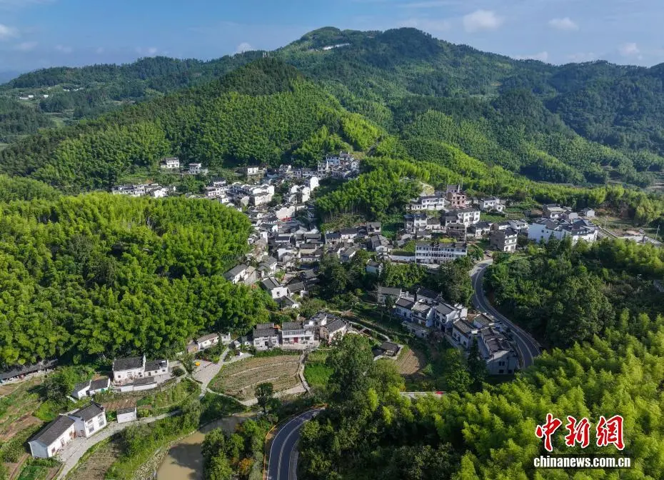 9月11日,初秋时节,安徽省黄山市徽州区呈坎镇灵山村景色旖旎,鳞次栉比的徽派民居与青山、竹林、梯田等相映成景,构成一幅美丽的生态田园画卷。(无人机照片)施亚磊 摄