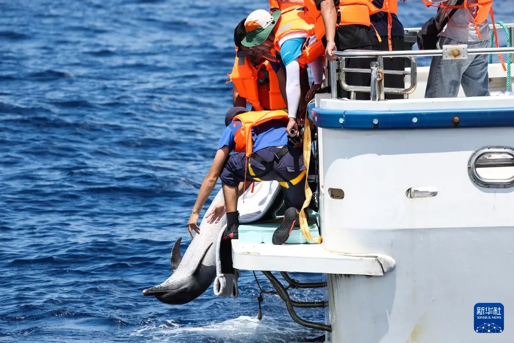 9月14日,在海南万宁获救的搁浅海豚“万万”成功回归大海。据了解,“万万”为雄性点斑原海豚,6月18日在万宁神州半岛附近海域意外搁浅,经过近三个月的治疗与康复护理,已恢复健康状态,经专家组讨论后,“万万”被运往万宁一处适合其生活的海域放归,顺利回归家园。