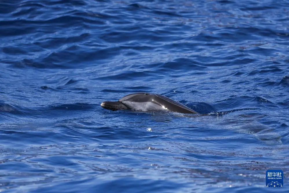 9月14日,在海南万宁一处海域,海豚“万万”在大海中畅游。