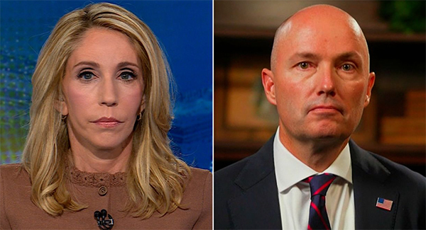 美国犹他州州长斯潘塞·考克斯(右)接受美媒采访。 视频截图