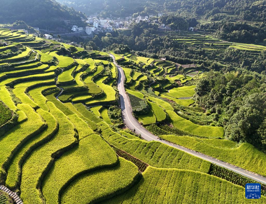 9月16日,在湖南省衡阳市衡山县白果镇拍摄的田园风光(无人机照片)。