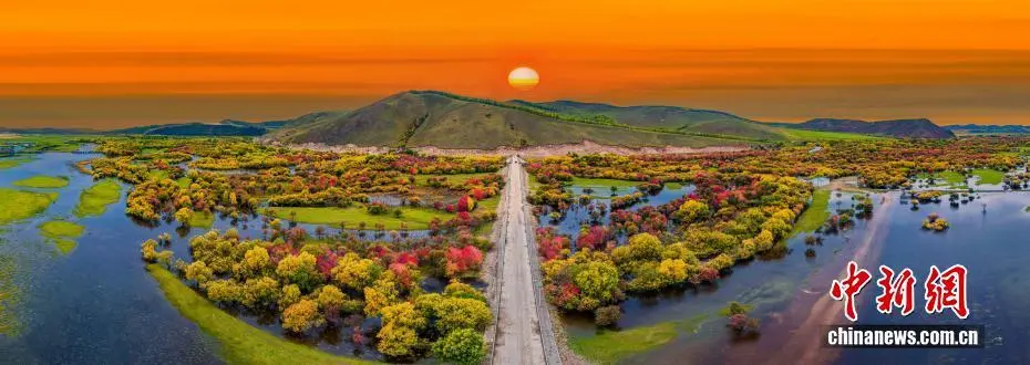 近日,内蒙古自治区呼伦贝尔额尔古纳市秋意正浓。湿地褪去青绿,漫滩草甸染成金黄,蜿蜒水流倒映着蓝天与岸边的彩林,宛如大地铺开的斑斓锦缎;不远处的白桦林更成了“天然画布”,金黄叶片在阳光下闪烁,风过时满林“碎金”摇曳,每一处景致都成了摄影爱好者眼中不容错过的秋日浪漫美景。图为金黄、橙红、橘红等色彩交织在一起,美不胜收。武飞虎 摄