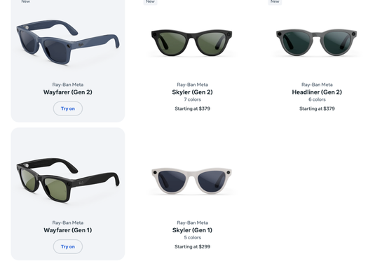 Meta 还带来了去年爆款眼镜 Ray-Ban Meta Glasses 的升级版:Ray-Ban Meta Gen 2(简称 Gen 2) 。