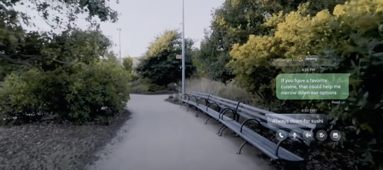 Meta 给了一个演示,你戴着眼镜和艺术家朋友对话,你可以扫描当下环境(比如墙上的挂饰),给他提供一些创作灵感。