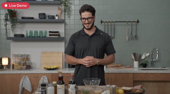 除了实时翻译,Live AI 支持智能语音助手反馈,比如你戴着 Meta 眼镜做饭,不用再手忙脚乱的在手机上找菜谱,直接问 Meta 操作步骤,它会播放语音同时,实时显示流程在眼镜的 HUD 上。