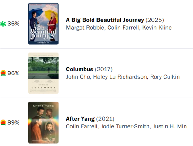 不过,《绮梦之旅》在北美3330家影院上映后,只获得350万美元票房。相比郭共达之前的作品《杨之后》取得的89%的新鲜度以及《在哥伦布》96%的新鲜度,这部新片的评分可谓断崖式下滑。