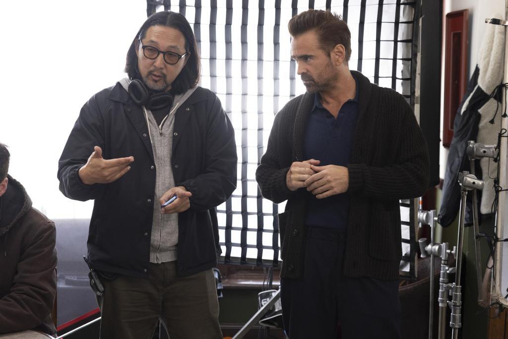 郭共达(左)与科林·法瑞尔在拍摄现场。