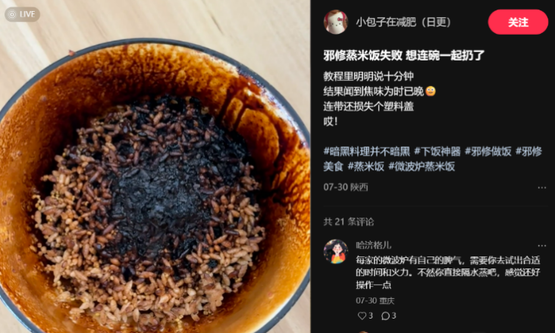 烹饪新手最怕的就是辛苦忙半天,结果端上来一盘黑暗料理。“邪修美食”的配方不容易失败,即使加料不精确、时间多几分钟少几分钟,成品依旧可吃、甚至味道稳定。因为有这个“保底机制”,做饭的人降低了心理压力,敢于也愿意动手尝试。