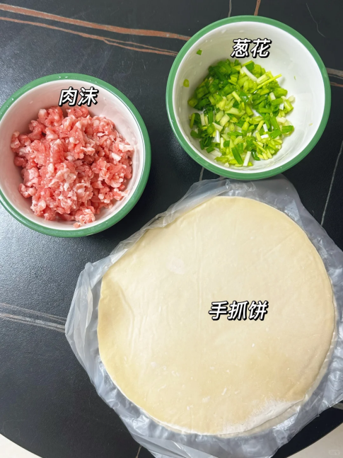 超市冷冻手抓饼 + 肉末 + 烤箱,15 分钟搞定外酥里嫩的版本,懒人狂喜!所需食材:手抓饼+猪肉沫+葱花