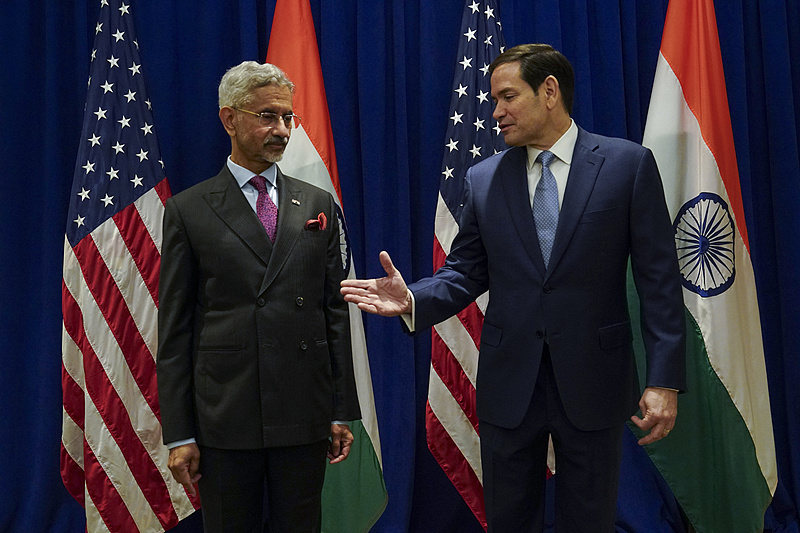 当地时间2025年9月22日,第80届联合国大会期间,美国国务卿鲁比奥在纽约皇宫酒店与印度外交部长苏杰生握手。 视觉中国