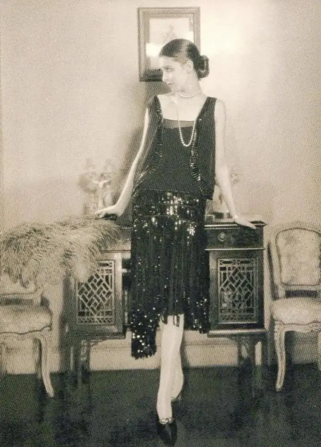 低腰线的魅力在于它的“松弛”与“摇摆”。当裙摆不再高高束起,而是垂落至胯部甚至大腿,身体的重心随之下移,带来一种与传统女性形象截然不同的视觉冲击。20世纪20年代的flapper裙多以流苏、亮片、薄纱点缀,随着舞步摇曳生姿,成为舞池里最自由的表达。