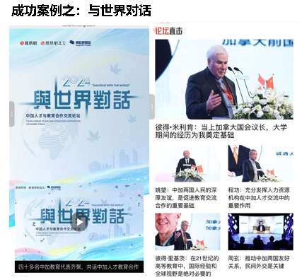另外,与加拿大前国会议长等国际政要参与,在凤凰中心共同打造了一期“与世界对话“节目,聚焦中外文化交流,打造具有国际影响力的对话平台。