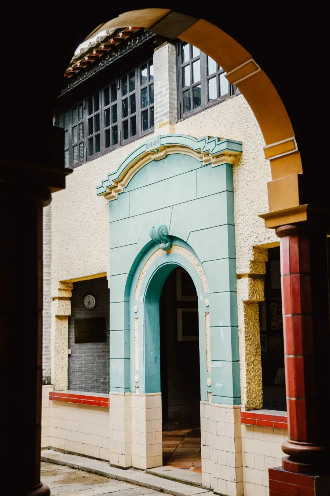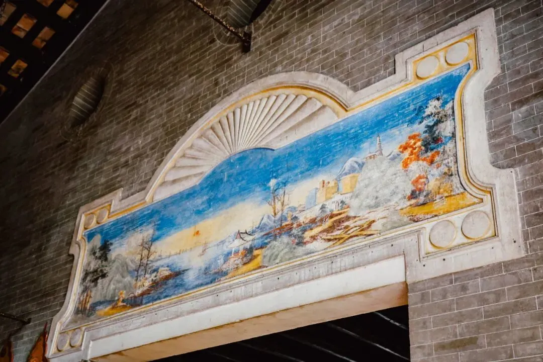 南洋风的廊柱和壁画,脚下的每一块砖,虽有了岁月的磋磨,但轮廓、色彩依旧清晰可见。