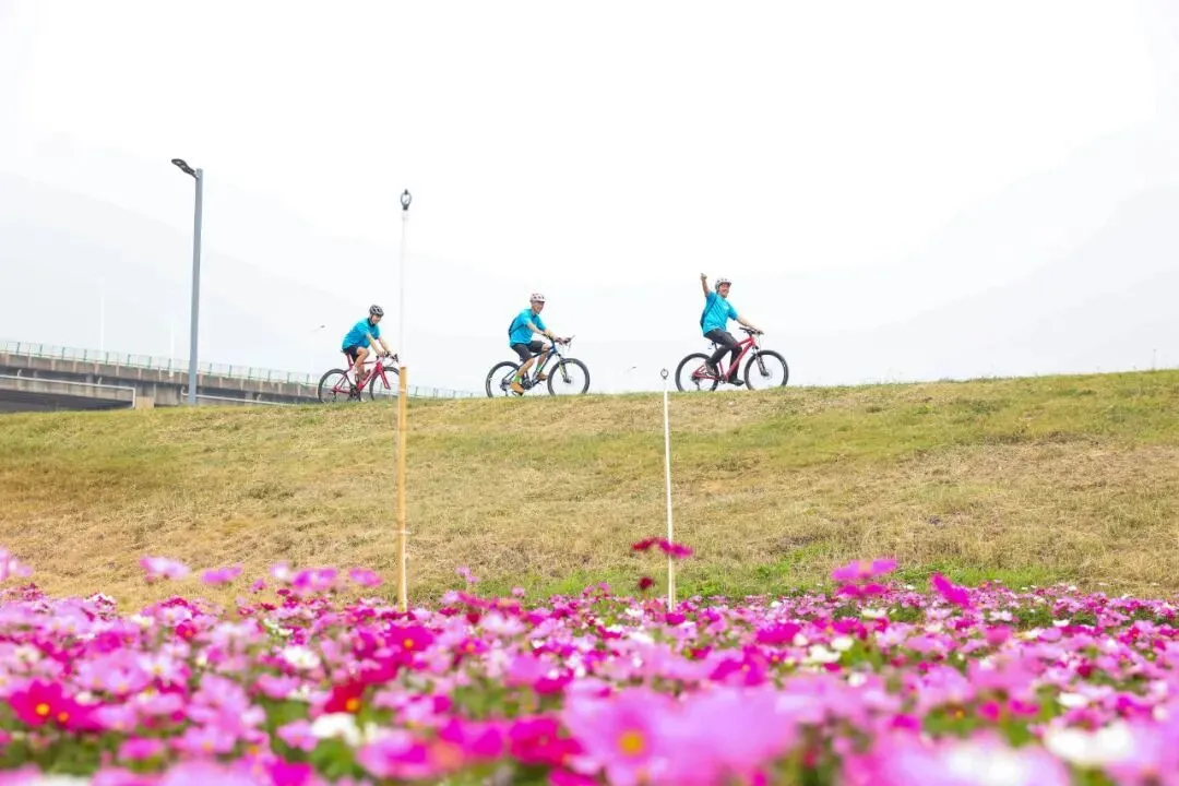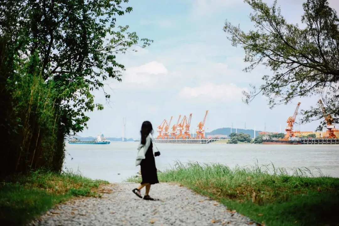 长长的环岛绿道,一边是滚滚江水,一边是农家田园。