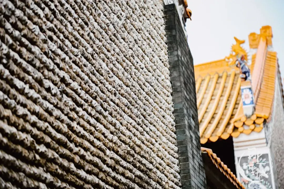 孩子们的画挂在墙上,均安人用蚝壳砌的墙,整整一面特别壮观。