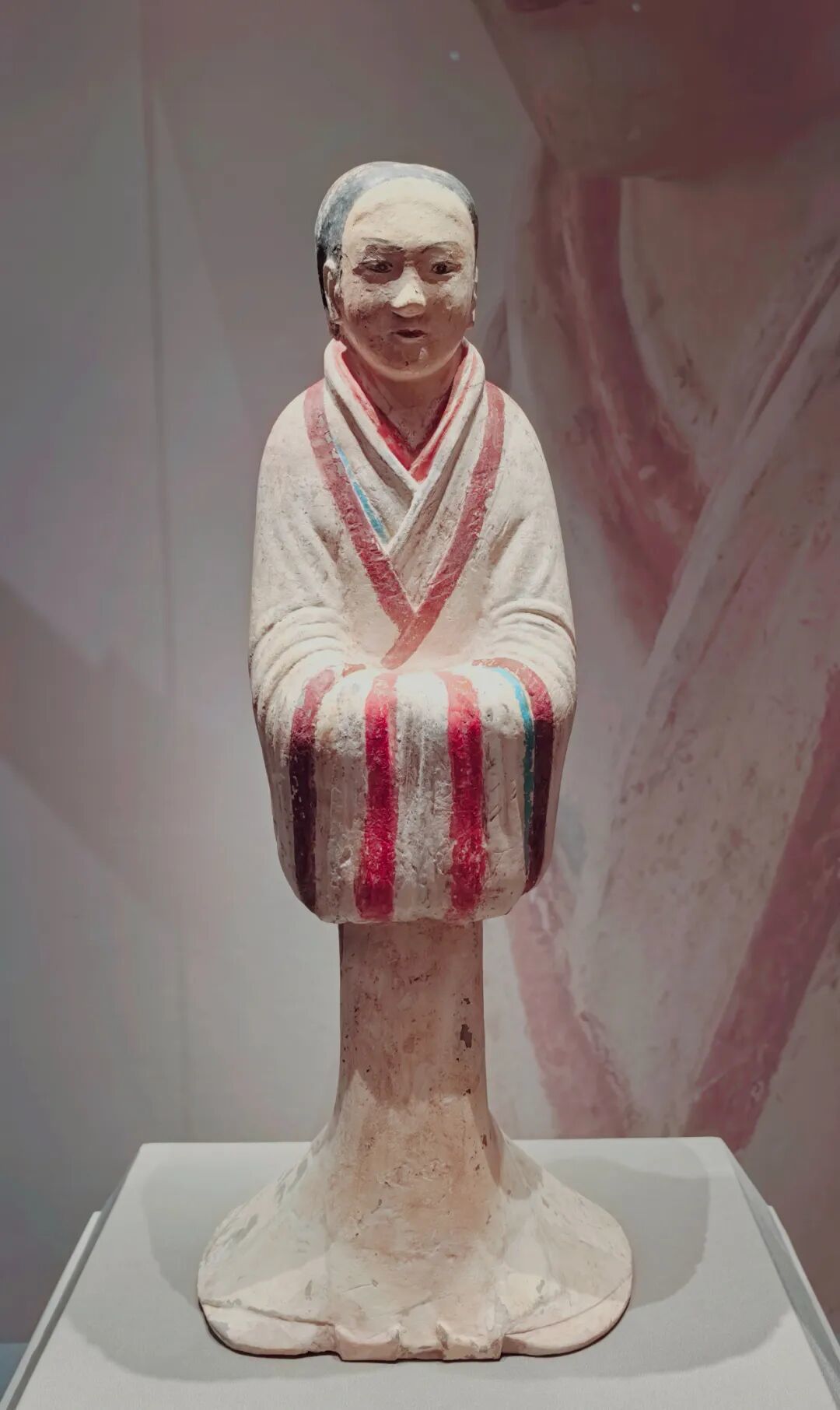“侍女俑身穿汉服,发为堕髻,能让我们直观感受到汉代服饰之美;另一方面她优雅的微笑所展现出的精神状态,也让我们侧面了解到‘文景之治’时期汉代人丰衣足食的美好生活。”汉景帝阳陵博物院负责人说。