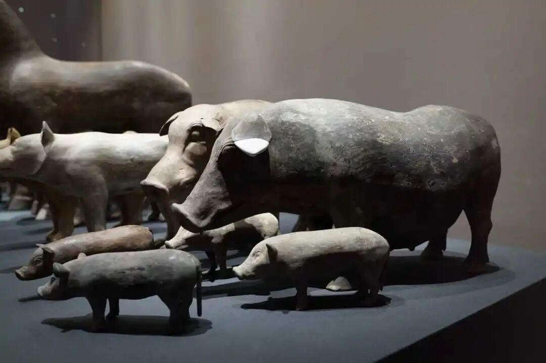 “盛世华章”部分将家畜、钟磬、金器、舞伎俑、侍女俑、文吏俑等文物分为仓廪实足、礼乐昭彰、风华绝代三个主题,通过简约典雅的器具、风姿绰约的陶俑一展文景时期的艺术生活之美,体现了大汉治世气象。