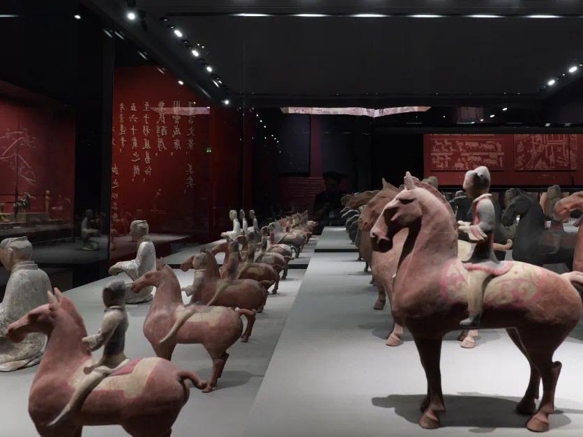 “汉家陵阙”部分以汉景帝阳陵考古发现为切入点,通过瓦当、空心砖等文物,展示汉代帝陵的恢弘气象。“治国之道”部分通过官印、骑兵俑、度量衡、车马器等文物,展现了文景时期政治上的汉承秦制、经济上的与民休息、军事上的秣马厉兵,深刻阐释“文景之治”出现的制度原因。