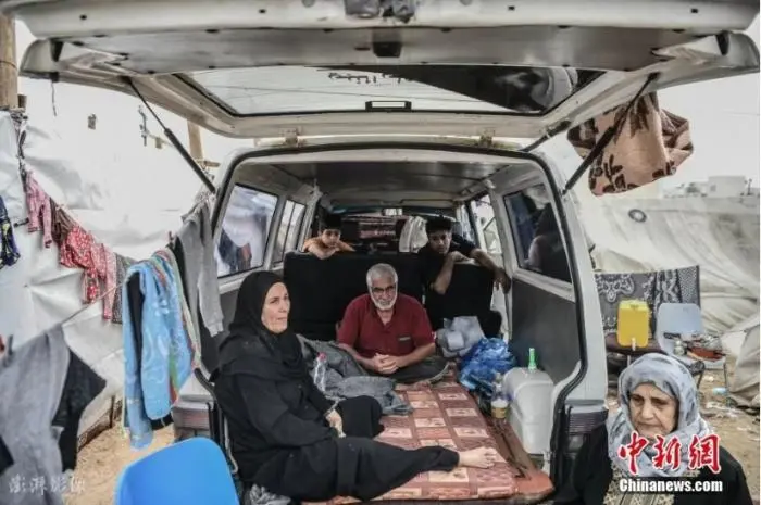 资料图:加沙汗尤尼斯,巴以冲突持续,当地遭以色列袭击后,流离失所的当地民众在困难条件下艰难求生。因家园被摧毁,他们选择住在汽车内或是搭起的临时帐篷。
