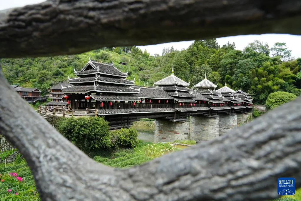 这是9月25日拍摄的三江侗族自治县的程阳永济桥。该桥建成于1924年,整座桥梁搭建时不用一钉一铆,主要由木料和石料建成,桥长近80米,宽近4米,高近12米,是我国建筑艺术中的珍品。