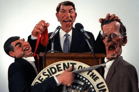 美国前总统里根(中)在《惟妙惟肖》中的木偶形象
