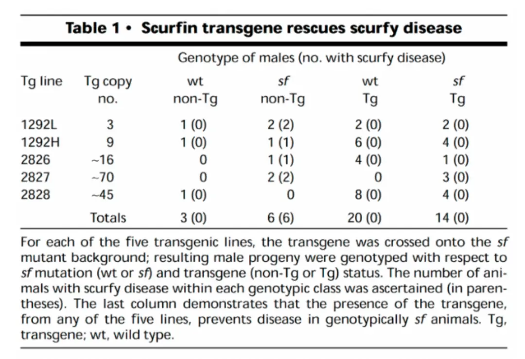 Brunkow 和 Ramsdell 并未止步于此。为了正式证明该突变是导致 scurfy 表型的原因,他们进行了一系列基因拯救实验。他们构建了五个携带 Foxp3 基因的转基因小鼠系,每个系具有不同的拷贝数,并分别将它们与 scurfy 小鼠杂交。通过这些严谨而确凿的实验,团队证明了野生型 Foxp3 能够拯救雄性 scurfy 小鼠免于疾病。